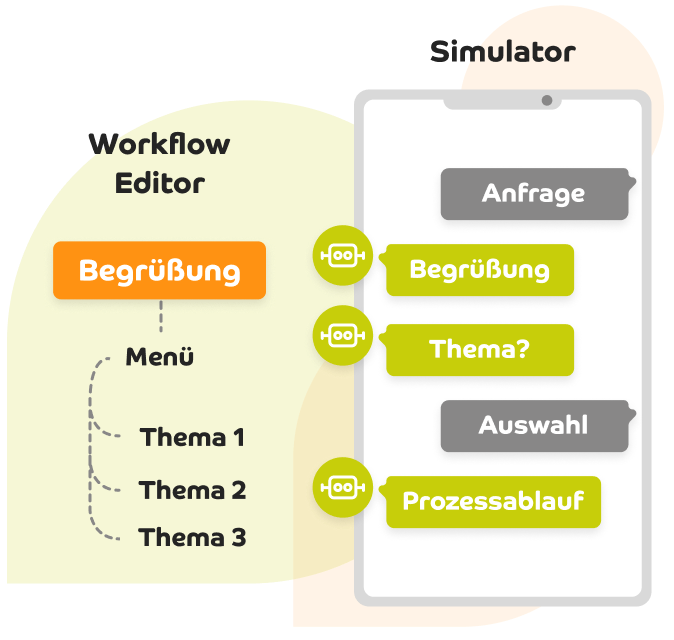Testen Sie die Chatabläufe mit unserem Simulator einfach selbst. So sehen Sie am schnellsten, ob alles richtig funktioniert und können Anpassungen vornehmen.