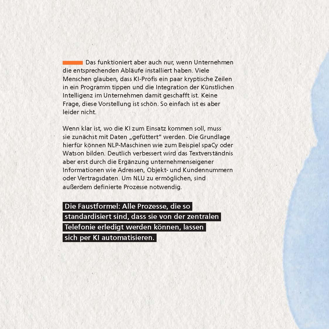 Viele Menschen stellen sich KI als eine Art großes Gehirn vor, das beliebige Aufgaben selbständig löst. Das ist nicht der Fall. KI ermöglicht Computern lediglich, menschliche Intelligenz nachzuahmen. Jede KI ist für einen klar definierten Zweck entwickelt und agiert nur innerhalb dieses Rahmens.